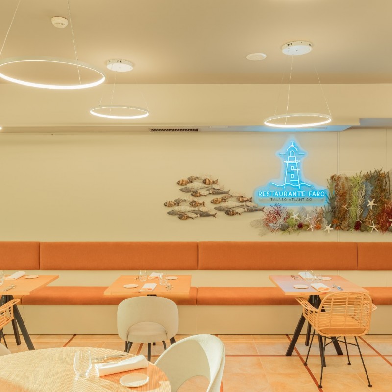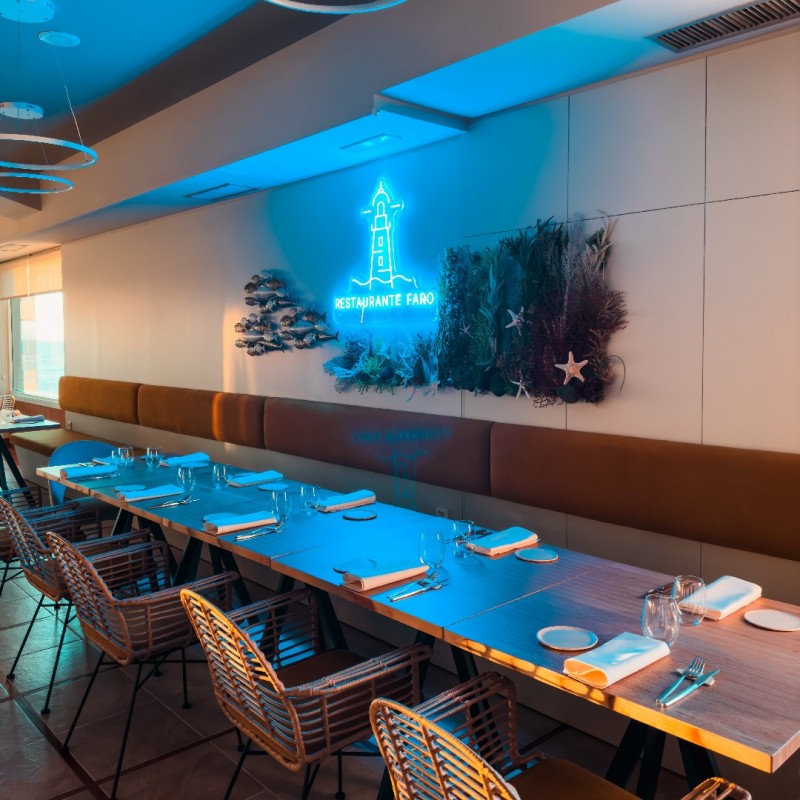Una comida o cena concertada del menú del Restaurante Faro (bebidas no incluidas) y un acceso de una hora al Recorrido Marino para dos personas. No válido para las noches de sábado.